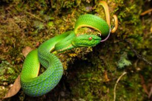 Pronto y ya descansados del viaje en avión, desayunaremos y realizaremos un recorrido en coche aproximado de 1 hora y media hasta el Parque Nacional del Monte Kinabalu. Una vez lleguemos, entraremos al parque y haremos un pequeño trekking antes de comer, donde disfrutaremos de la belleza del entorno, así como de la densa flora formada por enormes helechos y preciosas orquideas, y de su cantidad enorme de fauna endémica, tanto de reptiles y anfibios, como de aves. Posteriormente entraremos a nuestro hotel. Debido a la naturaleza del país, las comidas y las cenas son en horarios mas tempranos que en España. Tras la cena, nos dispondremos a hacer una salida nocturna por el Monte Kinabalu, de la mano de nuestros guías locales, nuestros objetivos principales serán descubrir los principales endemismos de la zona, como la tan buscada Trimeresurus malcolmi.