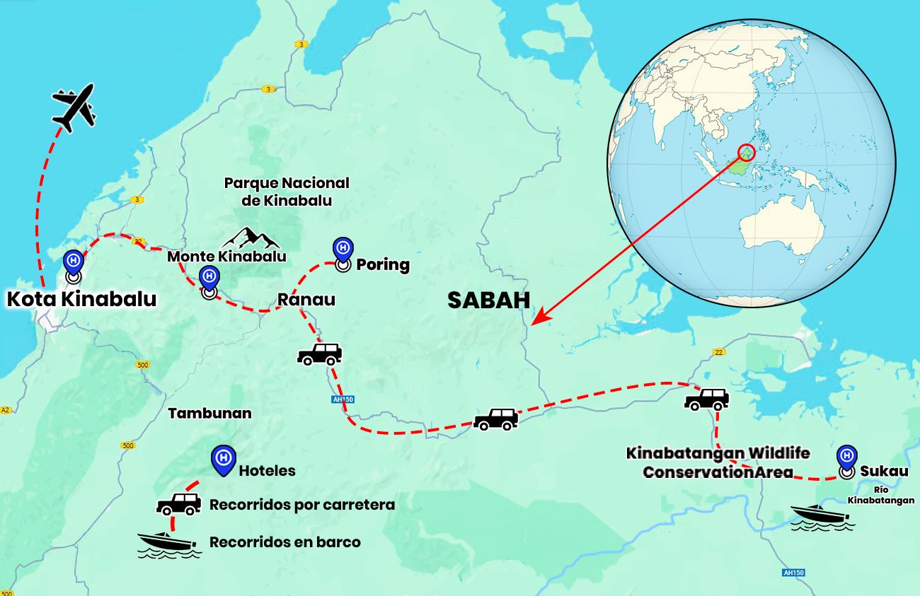 Borneo y en especial la región de Sabah, es un lugar mágico para los amantes de la naturaleza. En estos 14 días, recorreremos de oeste a este esta región, desde Kota Kinabalu, pasando por el Parque Nacional de Monte Kinabalu y los bosques lluviosos y cálidos de Poring, donde podremos disfrutar de una gran biodiversidad de reptiles, anfibios y aves, hasta la maravillosa reserva de Kinabatangan, hogar del elefante pigmeo, orangutanes salvajes, monos narigudos, calaos, macacos, cocodrilos y una innumerable cantidad de mamíferos y aves. Un lugar emblemático, donde realizaremos diversos safaris en lanchas privadas, y salidas nocturnas en la selva.