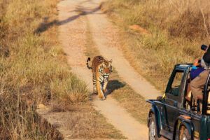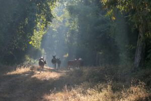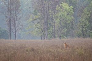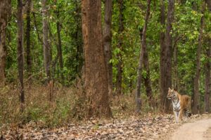 Por la tarde, salimos en nuestro primer safari en jeep (15:00–18:00 h) en el Parque Nacional de Kanha. Es aquí donde comenzamos a sentir la magia de estos bosques, atentos a cada movimiento, cada rastro y cada sonido que pueda delatar la presencia del majestuoso Tigre de Bengala. Sin duda, una magnífica primera toma de contacto con las tierras salvajes de Kanha.