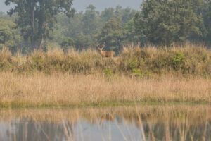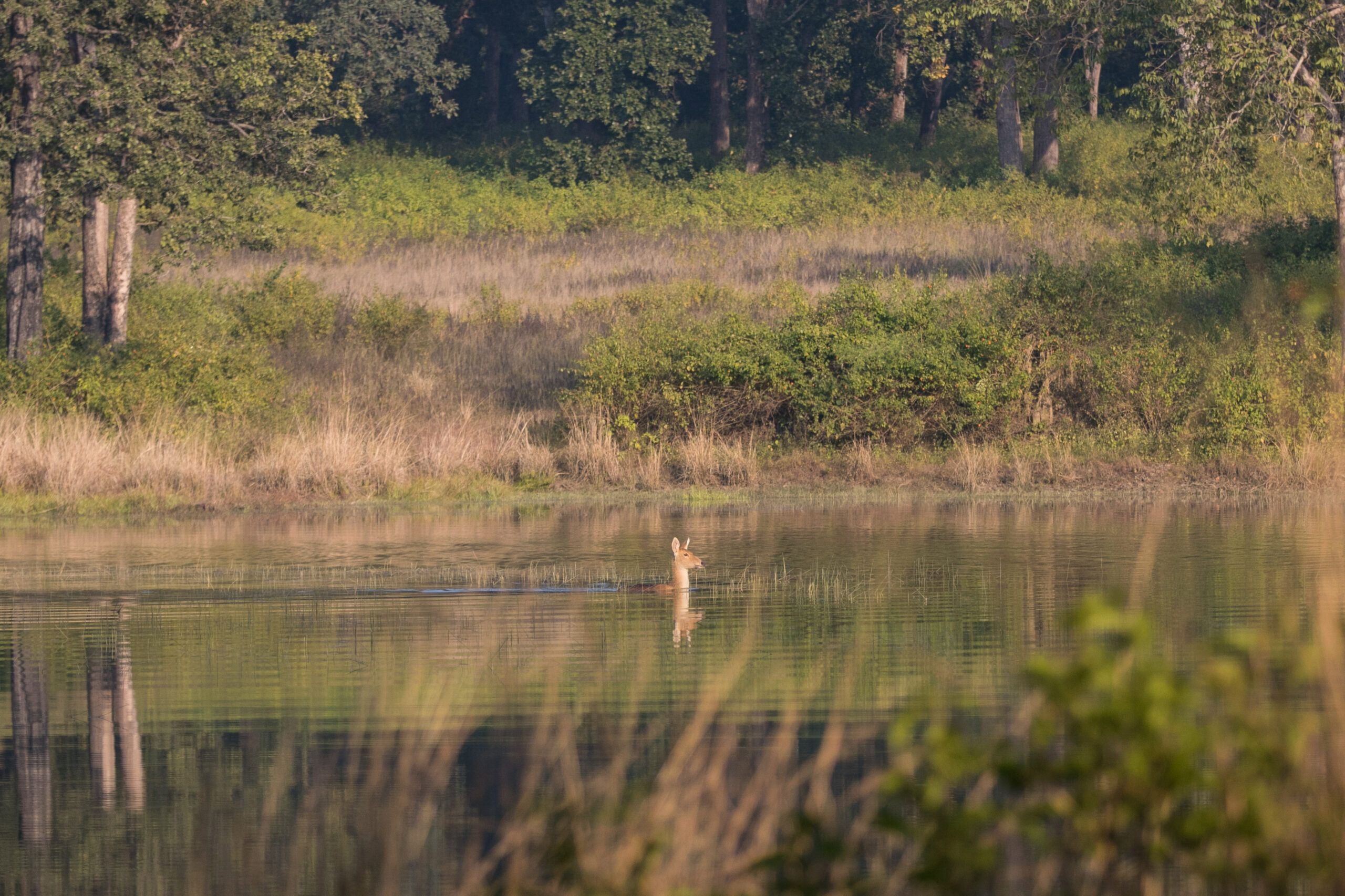 A pocas horas, Kanha despliega un paisaje de bosques de Sal, extensas praderas y humedales que forman uno de los ecosistemas más ricos del subcontinente. Además de ofrecer excelentes oportunidades fotográficas del tigre, es el último bastión del barasingha de tierras altas, una especie de ciervo emblemática. Su avifauna —con martines pescadores, drongos, águilas y decenas de especies tropicales— convierte cada safari en una experiencia vibrante.