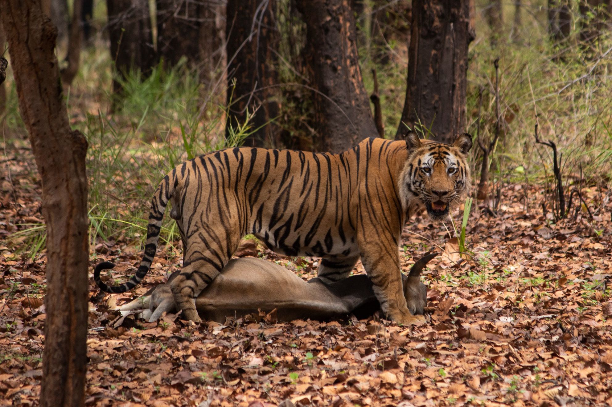 Durante estos tres días nos sumergimos por completo en la vida salvaje de Kanha, dedicando cada jornada a explorar en profundidad sus bosques de Sal, praderas abiertas y frondosos corredores donde el tigre reina en silencio.