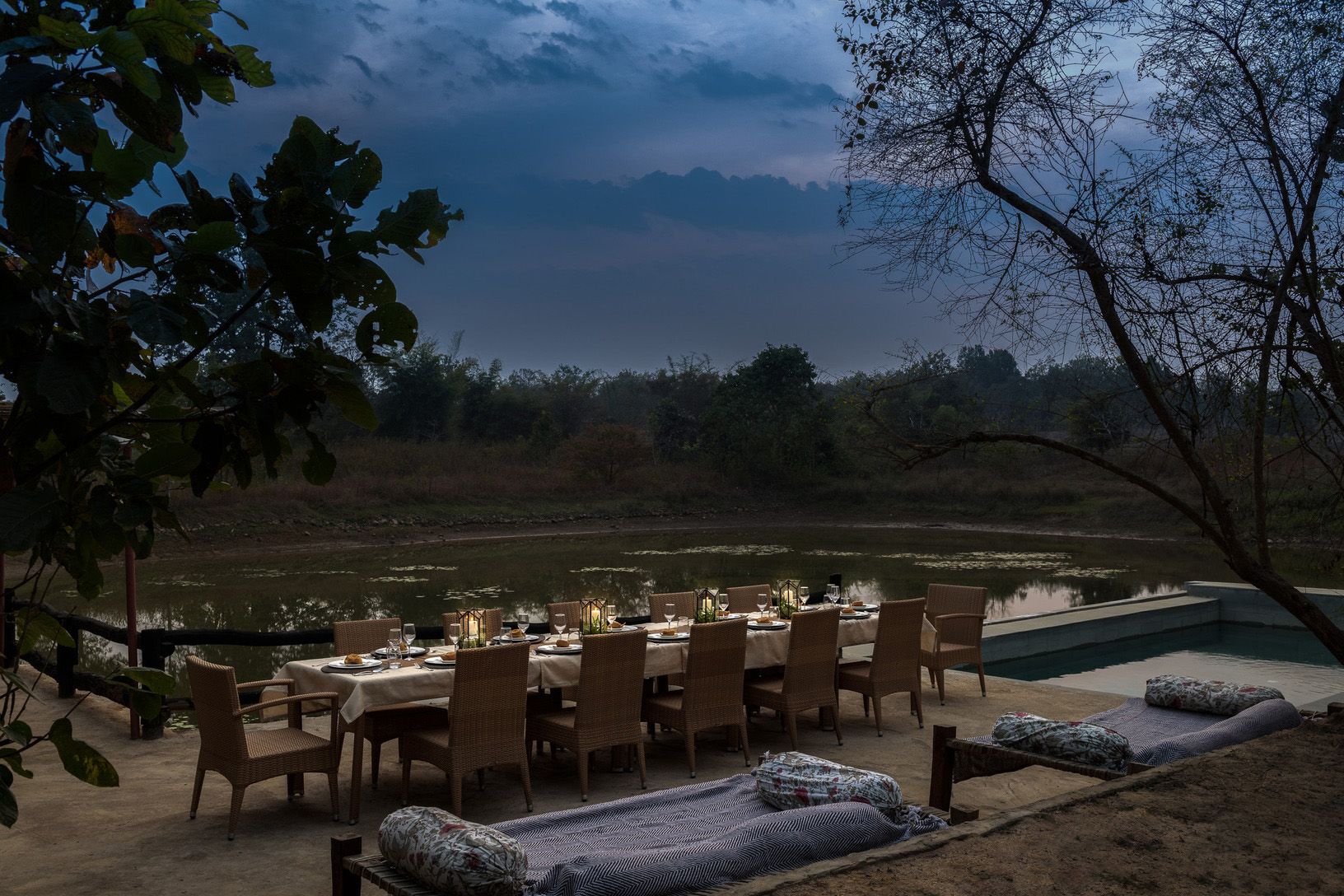 Al finalizar cada día, regresamos al lodge para disfrutar de la cena y una noche de descanso en plena naturaleza dentro del Bandhavgarh Tiger Reserve, preparando energías para una nueva jornada de exploración.