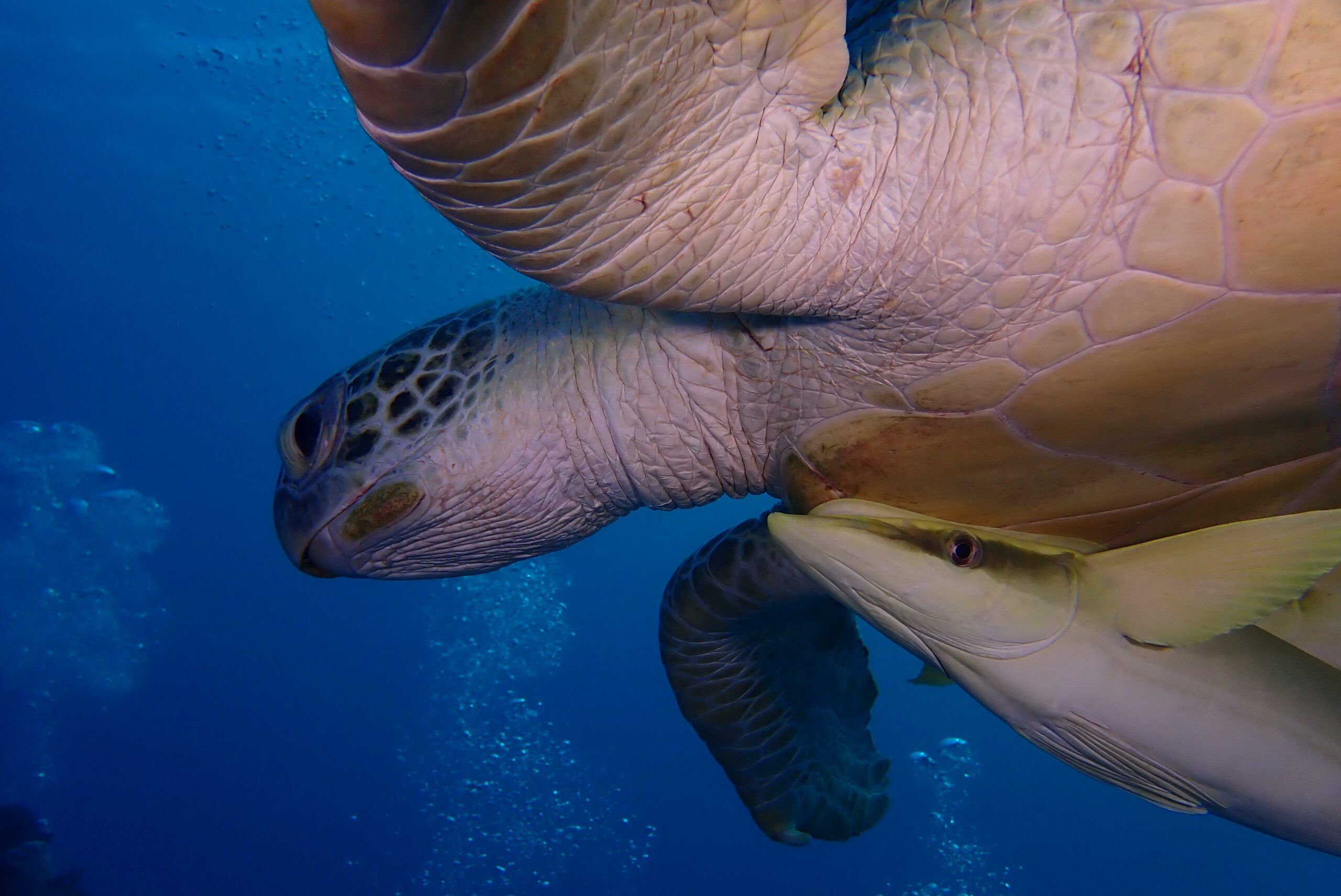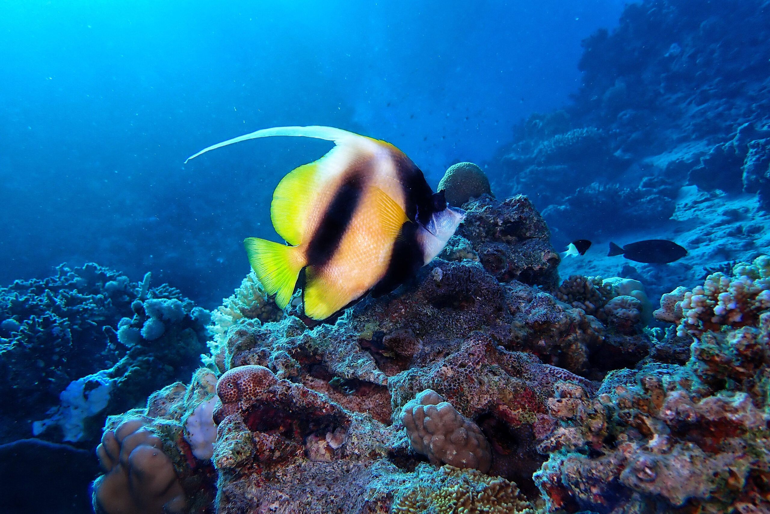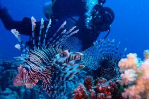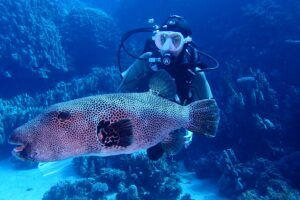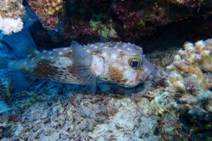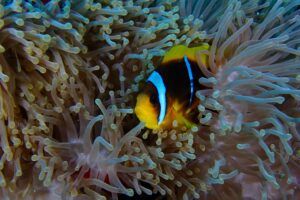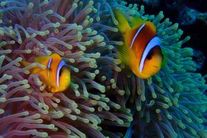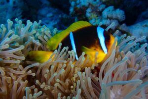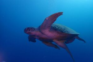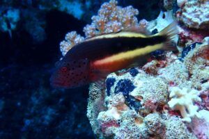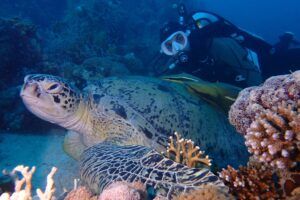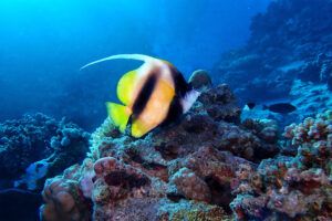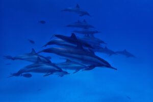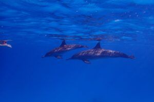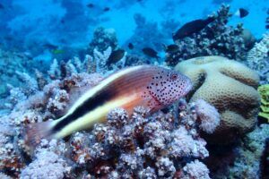 A lo largo del viaje, tendremos la oportunidad de observar delfines jugando en superficie, majestuosas tortugas verdes y carey desplazándose tranquilamente por los arrecifes, y cardúmenes de peces tropicales como fusileros, peces payaso, mariposa, loro o cirujano, acompañados por meros, napoleones y barracudas que patrullan las caídas. Con un poco de suerte, podremos encontrarnos con rayas águila, tiburones arrecife e incluso el esquivo tiburón zorro en las aguas azules del norte.