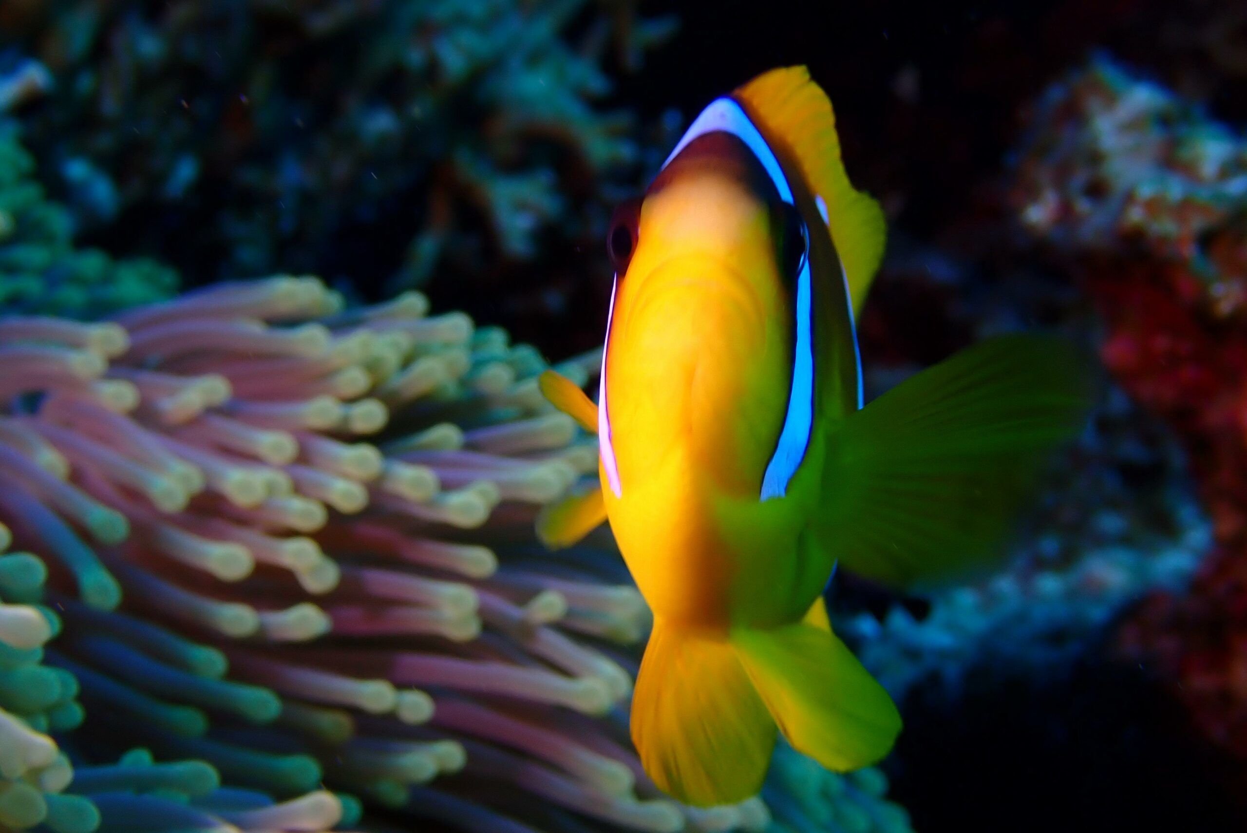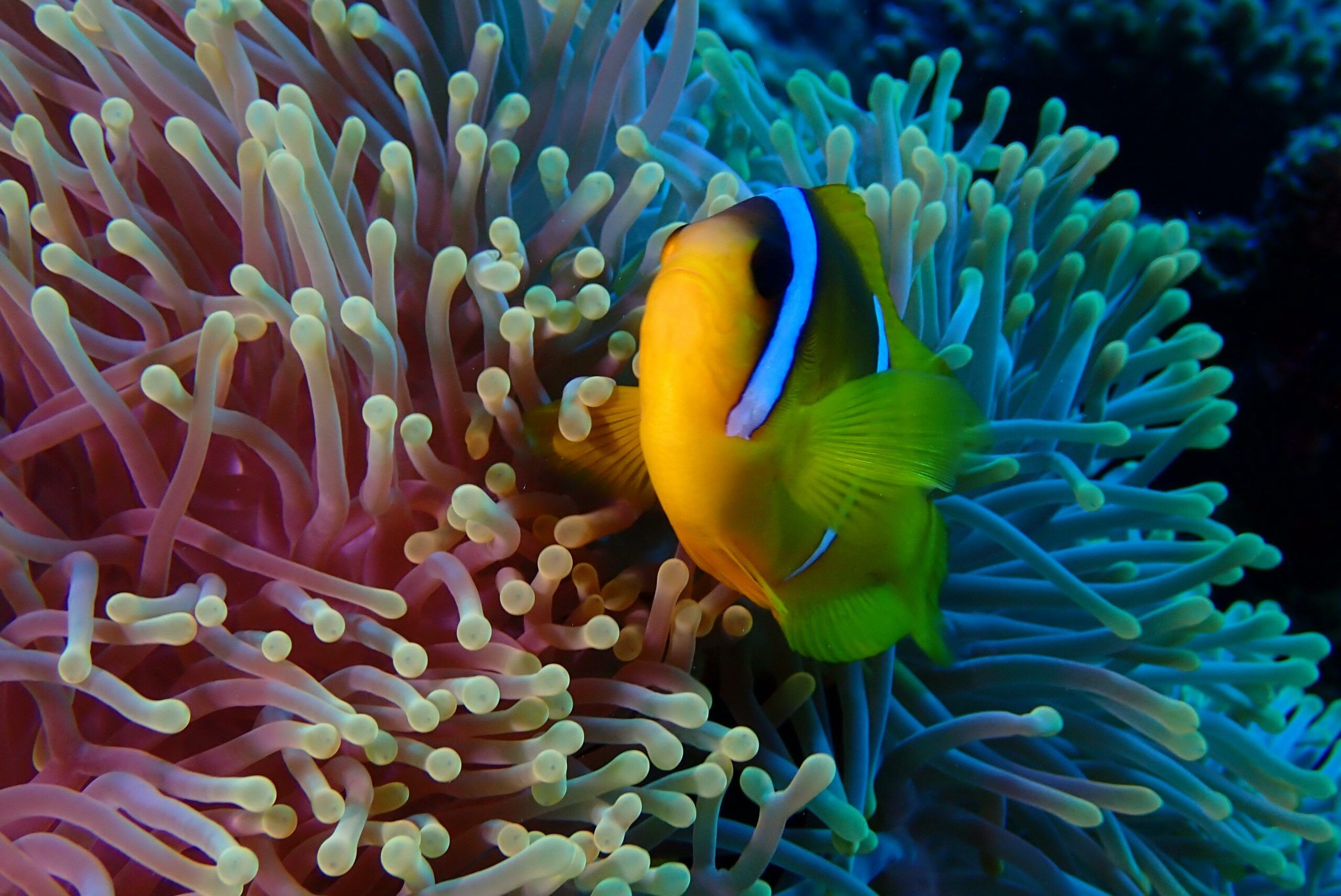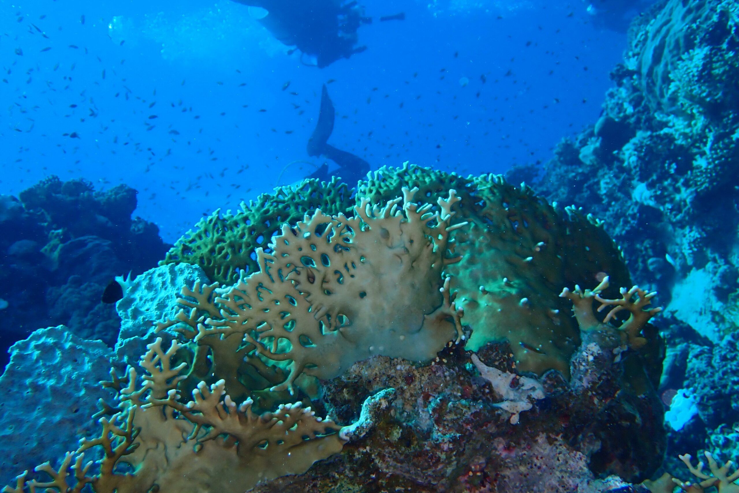 A lo largo del viaje, tendremos la oportunidad de observar delfines jugando en superficie, majestuosas tortugas verdes y carey desplazándose tranquilamente por los arrecifes, y cardúmenes de peces tropicales como fusileros, peces payaso, mariposa, loro o cirujano, acompañados por meros, napoleones y barracudas que patrullan las caídas. Con un poco de suerte, podremos encontrarnos con rayas águila, tiburones arrecife e incluso el esquivo tiburón zorro en las aguas azules del norte.